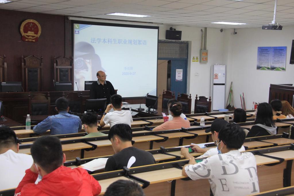(通讯员:刘宏伟 董洁佳)为了帮助2020级新同学了解法学专业及其就业前景,使同学们了解到职业规划的重要性,在校期间尽快摆脱迷茫,正确规划人生之路。9月27日下午,yl6809永利官网集团李亮国博士在模拟法庭为2020级本科新生及专升本新生进行职业规划指导。