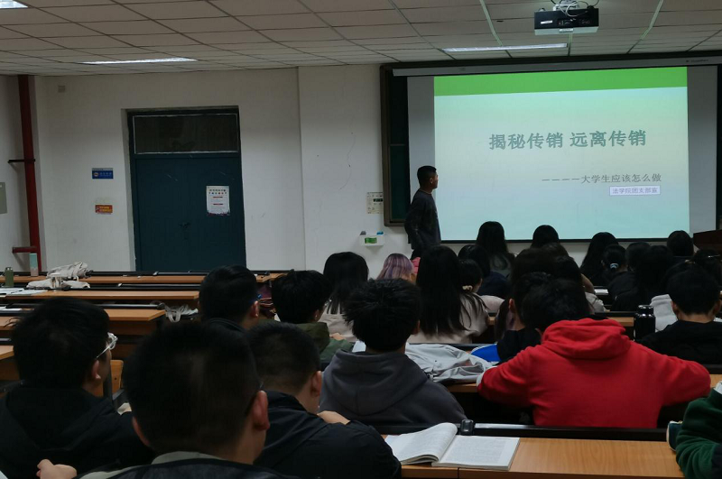 各支部团支书首先向同学们讲解了“什么是传销”,让同学们对传销活动有了初步的认识与了解。随后,通过鲜明的数字和真实的案例向同学们揭露了传销的危害与本质特征,同学们通过自己了解的案例和事实共同探讨“如何防范传销,实现自我保护”,部分学生代表踊跃发言,阐述了个人观点。最后,各支部团支书对团日活动进行总结,号召同学们“用坚定的信念构建打击传销的坚固城墙,为构建和谐校园贡献自己的一份力量。”