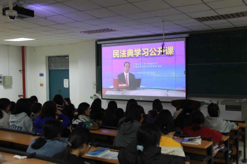 (通讯员:孟素燕 李志瑶)为深入学习全面依法治国精神,加强《民法典》学习宣传,培养学生法治思维、法治意识。yl6809永利官网集团于11月22日晚上,在和谐校区一号教学楼426组织大一全体学生集中观看了《民法典》公开课。