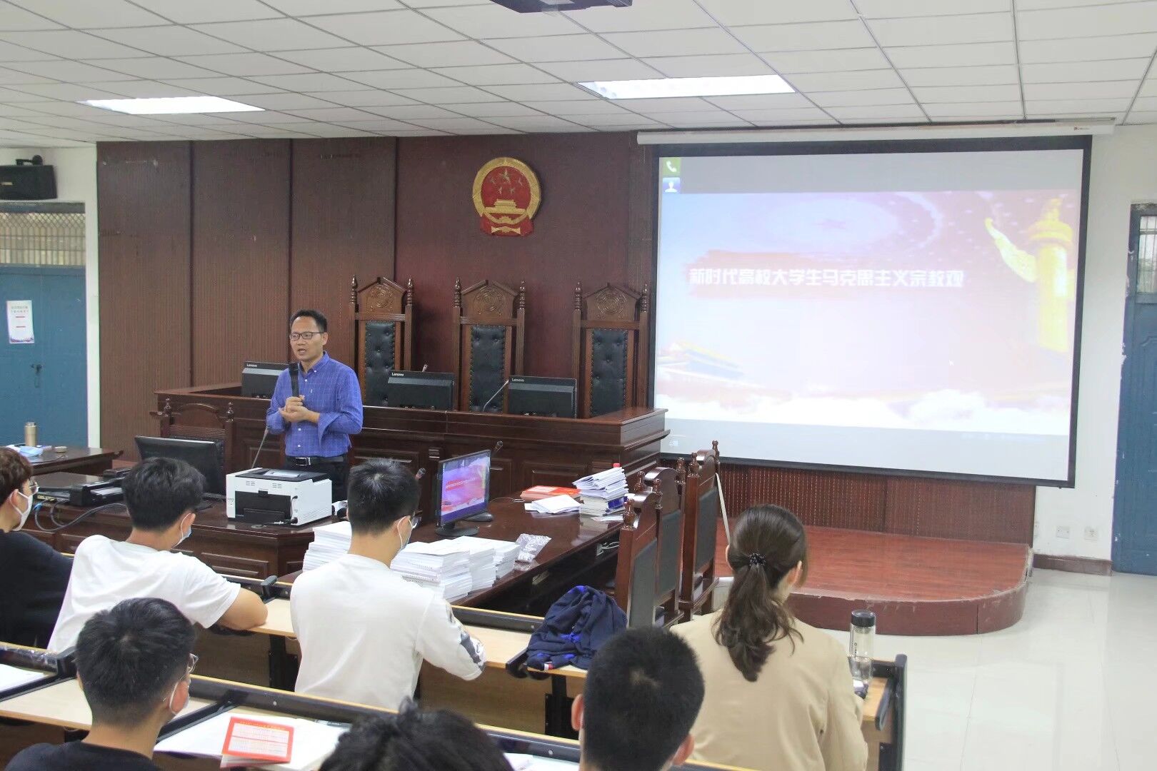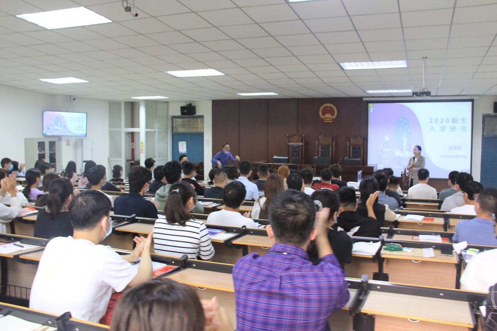 (通讯员:孟素燕 李志瑶)为了帮助大一新生尽快适应大学校园生活,增进对法学学科的全面了解,做好大学学习规划。yl6809永利官网集团于9月26日在和谐校区模拟法庭举行了2020届新生入学第一课主题教育活动,党总支副书记张强,团学办副主任孟素燕、辅导员刘宏伟、赵珂慧和全体2020届新生参加。