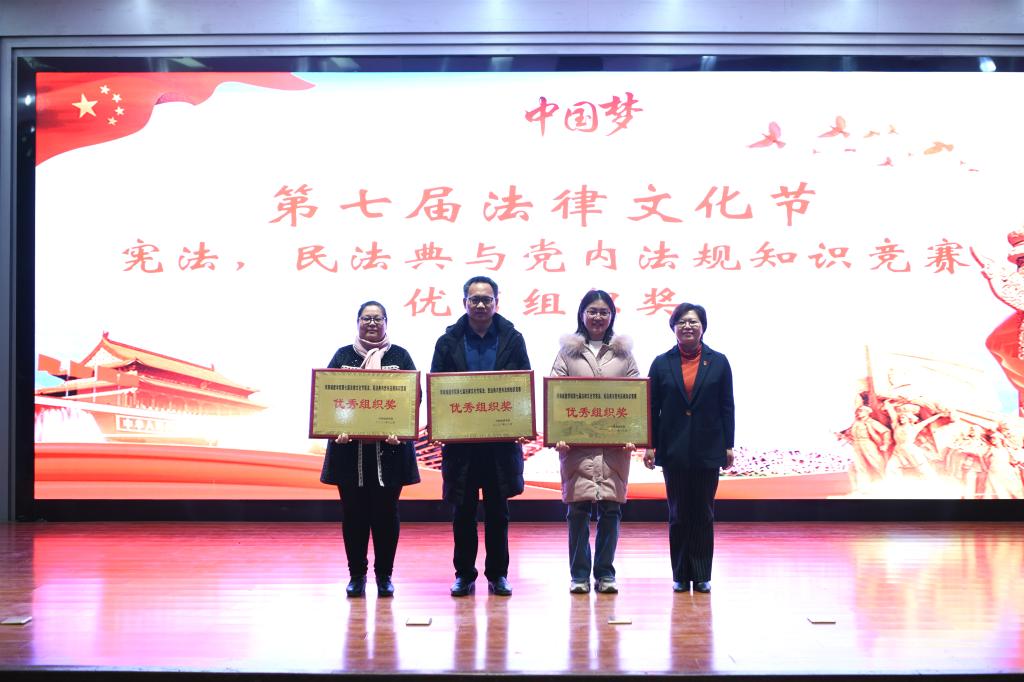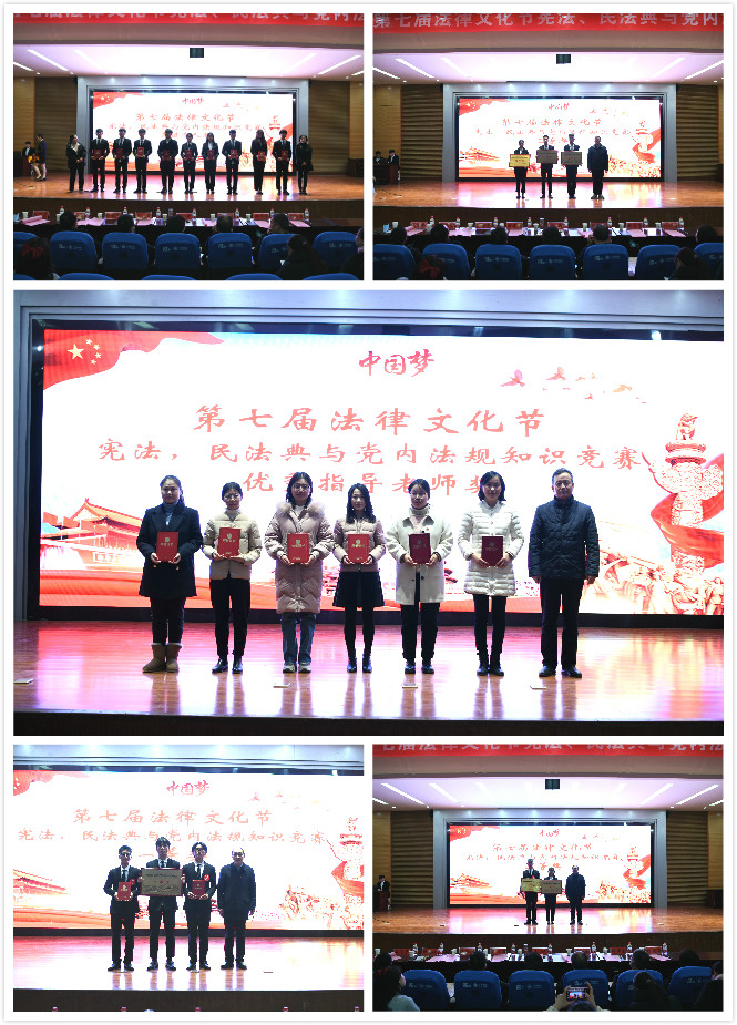 (通讯员:刘宏伟)为深入学习宣传习近平法治思想,贯彻落实党的十九届五中全会和中央全面依法治国工作会议精神,大力弘扬宪法精神,学习宣传民法典及党内法规,引导广大师生崇尚宪法精神,维护宪法权威,树立法治意识,12月24日下午,我校在行政楼学术报告厅举行宪法、民法典与党内法规知识竞赛决赛暨第七届法律文化节闭幕式,校党委副书记王靖出席活动并讲话,党委宣传部、组织部、纪委、学生工作部、团委、保卫处和承办单位yl6809永利官网集团相关负责人,各学院党委书记、副书记、团学办主任、指导老师及志愿者代表400余人参加活动。