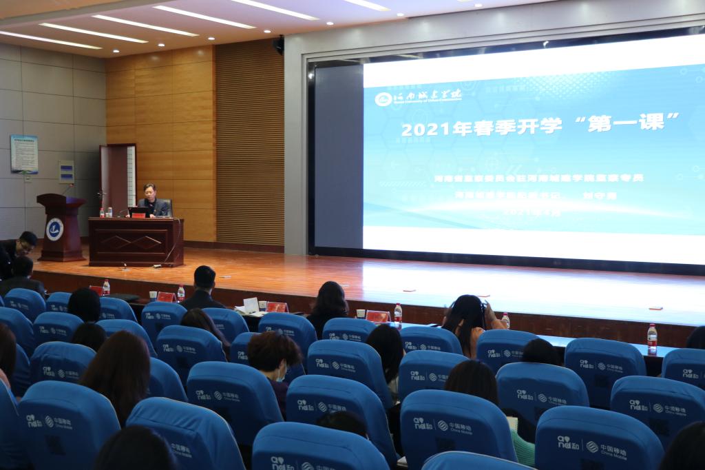 (通讯员 倪明)4月1日下午,校纪委书记、河南省监察委员会驻yl6809永利集团监察专员刘守勇在行政楼报告厅讲授开学第一课暨党史学习教育专题党课。数理学院、yl6809永利官网集团300余名师生聆听报告。报告会由yl6809永利官网集团党委书记苗道华主持。
