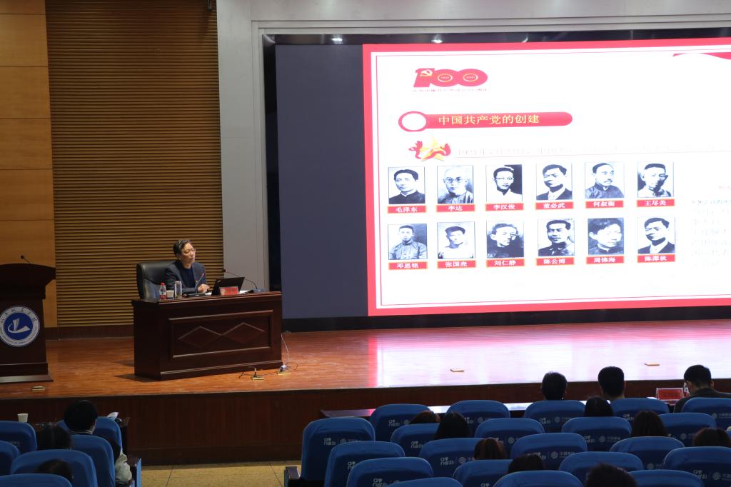 刘守勇以《党的百年历程与启示》为题,从1840年第一次鸦片战争讲起,回顾了清朝末年的积贫积弱,讲述了洋务派、维新派、资产阶级革命派开展的救亡图存斗争的历程,深刻分析了当时的历史现状及他们探索失败的主要原因,论证了为什么中国人民选择中国共产党。结合党成立100年来的艰辛奋斗历程及取得的巨大历史成就,深刻阐述了为什么中国共产党能带领全国人民走向胜利并最终实现中华民族伟大复兴,以及党的百年历程带给我们的启示。他最后要求广大师生要认真学习贯彻习近平新时代中国特色社会主义思想和党的十九大精神,树牢“四个意识”,坚定“四个自信”,切实增强“两个坚决维护”的思想自觉和行动自觉,做合格的社会主义现代化建设者和可靠接班人。