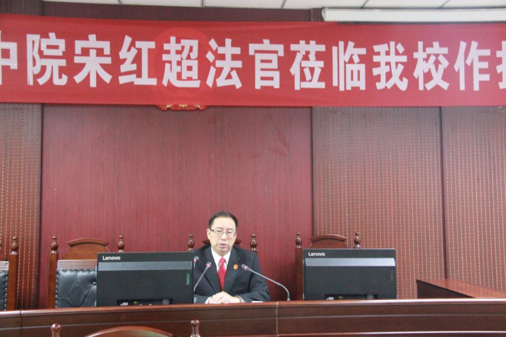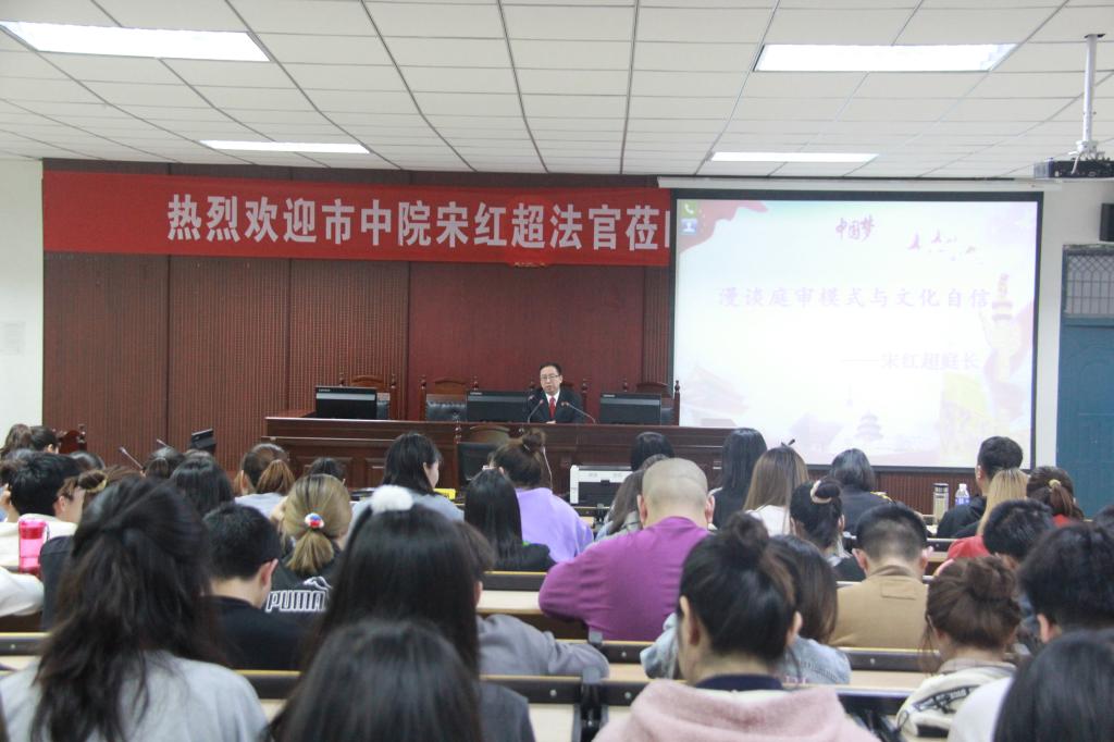 (通讯员:李艳珂)4月15日晚上,平顶山市中级人民法院审判委员会委员、刑一庭庭长、四级高级法官宋红超应邀来yl6809永利官网集团为师生作题为《漫谈庭审模式与文化自信》专题报告。yl6809永利官网集团师生150余人聆听了报告。报告会由yl6809永利官网集团党委副书记吴锦展主持。