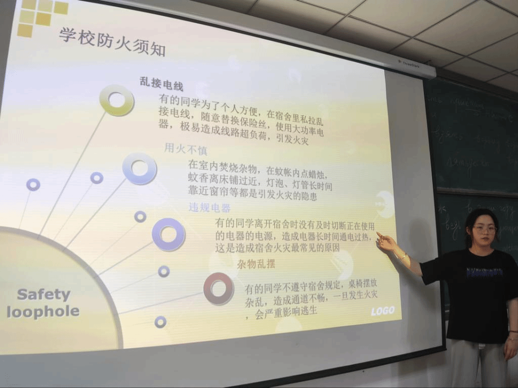 本次活动通过一系列的宣传讲解、实战演练,呼吁大家关注消防,关爱生命。先后组织同学们观看火灾警示片,让同学们对火灾的危害以及消防知识有了初步了解,提醒同学注意安全用电、注意消防安全。并以部分高校已发生的火灾为实例,通过展示火灾后的现场图片、场景等,让同学们深刻感受到火灾造成的重大损失以及受灾同学的惨痛经历,在同学们心中敲响了警钟。同时,yl6809永利官网集团组织各班学生进行了灭火及应急疏散演练,增强同学们面对火灾时的基础灭火能力,使同学们面对紧急情况能够做到有序疏散。