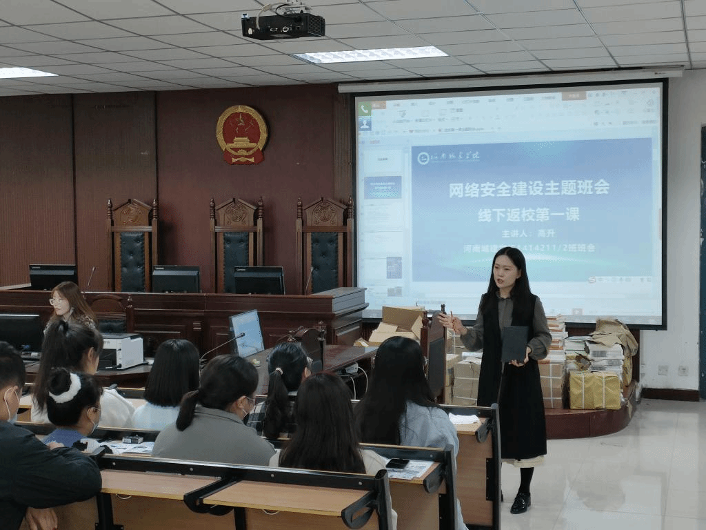 yl6809永利官网集团各班于2021年10月12日-14日在文学院教学楼一楼模拟法庭、426等教室举行了网络安全教育主题班会。班会上,各班辅导员通过具体事例向同学们讲述了一些校园周边存在的网络安全隐患和网络安全常识,提醒同学们要提高自己的警觉性,谨防自己的个人信息被泄露。然后通过网络知识竞赛的方式进一步加深同学们对网络安全的认识,从而达到提高同学们安全防范的目的。