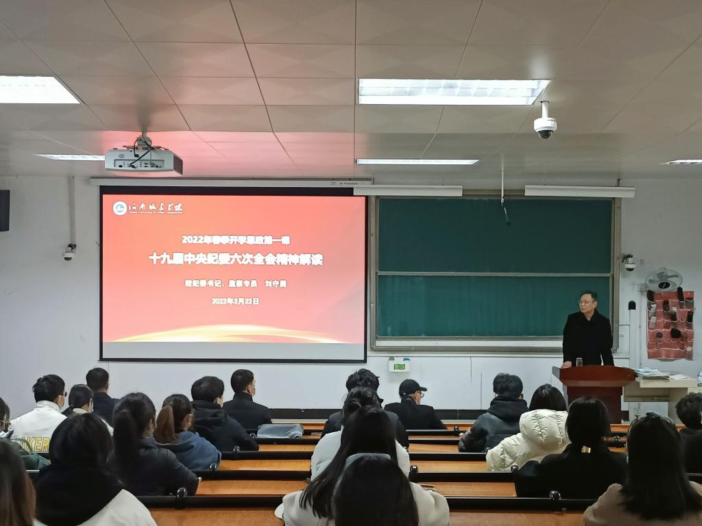 会上,刘守勇介绍了十九届中央纪委六次全会的会议基本情况,带领大家学习了习近平总书记在会上的重要讲话精神,传达了中央纪律检查委员会常务委员会工作报告,并结合纪检监察工作实际和自身经验体会,对十九届中央纪委六次全会的“六个必须”“九个坚持”“七项要求”“四个任重道远”等内容进行了详细的解读。他强调,要深入学习贯彻习近平总书记重要讲话精神,落实十九届中央纪委六次全会要求,坚持严的主基调不动摇,坚持不懈把全面从严治党向纵深推进。他希望年轻干部要守住拒腐防变防线,练就过硬本领,发扬担当和斗争精神,在新时代新征程上留下无悔的奋斗足迹。他要求年轻学生要在坚定理想信念上下功夫,在厚植爱国主义情怀上下功夫,在加强品德修养上下功夫,在增长知识见识上下功夫,在培养奋斗精神上下功夫,在增强综合素质上下功夫,立志为中国特色社会主义奋斗终身的有用人才。整场报告深入浅出,全面深刻,重点突出,既有案例分析、趋势研判,又有数据分析、纵向对比,具有很强的政治性、指导性、针对性和实用性,精彩的报告赢得了与会人员的阵阵掌声。