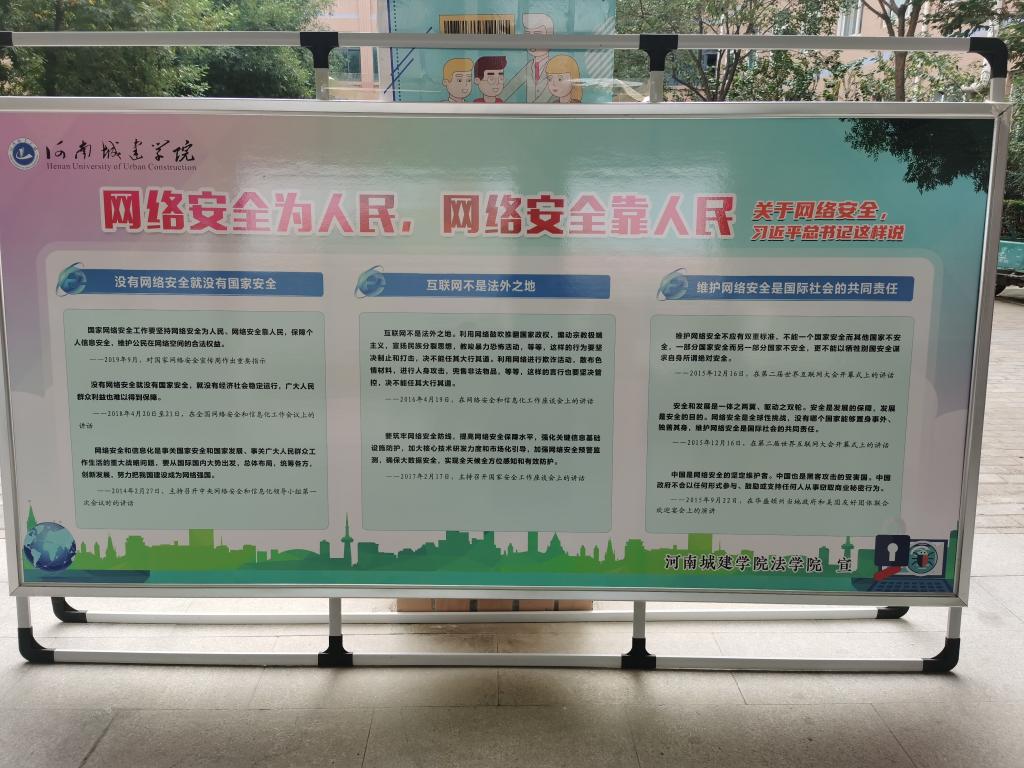 (通讯员 李艳珂)为深入宣传贯彻习近平总书记关于网络强国工作的重要思想以及对网络安全工作“四个坚持”的重要指示精神,提高全校师生的网络安全意识和信息甄别能力,我院于9月5日至9月11日持续开展了以“网络安全为人民,网络安全靠人民”的主题普法宣传活动。