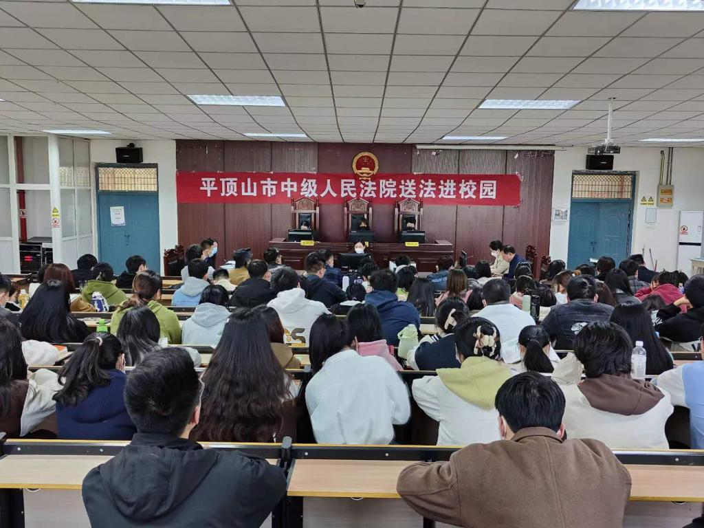(通讯员:赵珂慧、李茉涵)为深入学习习近平法治思想,贯彻落实中共中央办公厅、国务院办公厅《关于加强新时代法学教育和法学理论研究的意见》精神,积极推进“八五”普法进校园工作,营造学法、知法、尊法、守法的良好氛围,3月3日下午,我校与平顶山市中级人民法院联合开展“庭审进校园”活动,平顶山市中级人民法院民三庭副庭长盛华、张新兰、尚少辉三位员额法官、我校师生200余人参加活动。