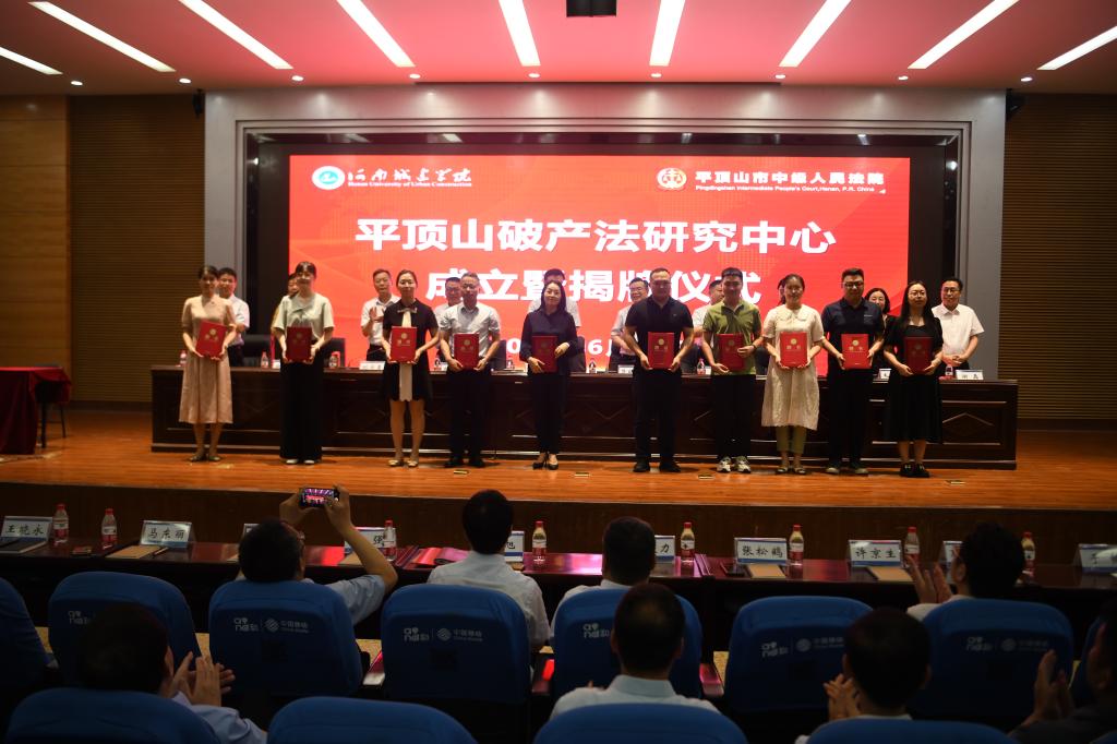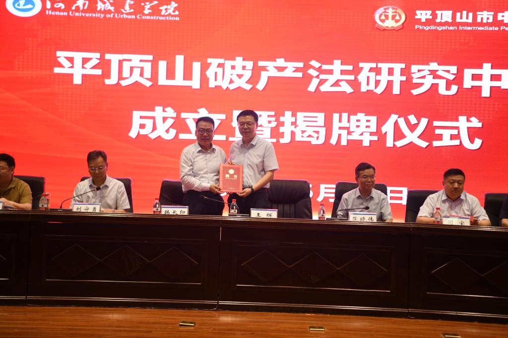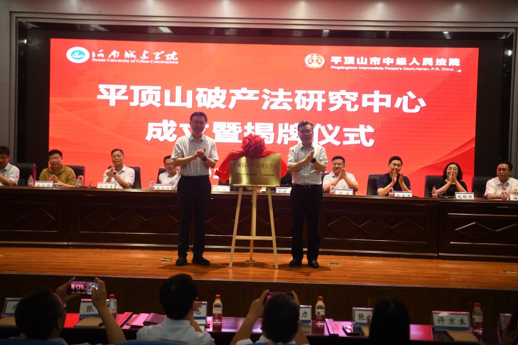 范晓伟校长与王辉院长共同为平顶山破产法研究中心揭牌