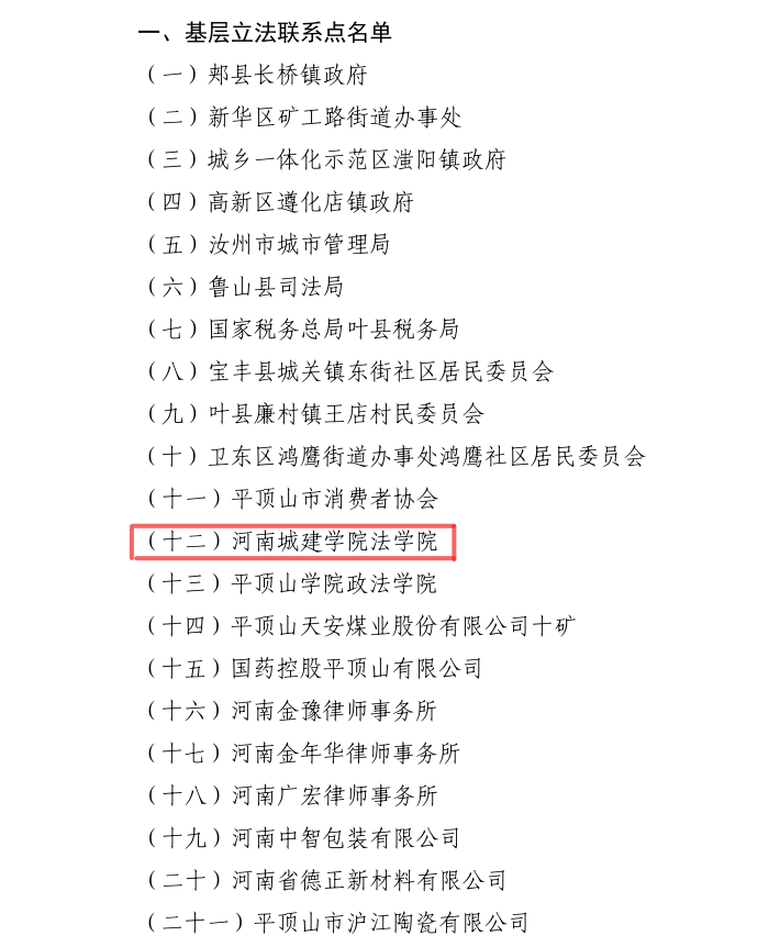 为进一步推进科学立法、民主立法、依法立法,拓展社会公众参与政府立法的途径,践行全过程人民民主,不断提高立法质量,为平顶山市经济社会高质量发展提供法治保障,近日,市政府办公室印发通知,确定yl6809永利官网集团等25家单位为平顶山市首批政府基层立法联系点。