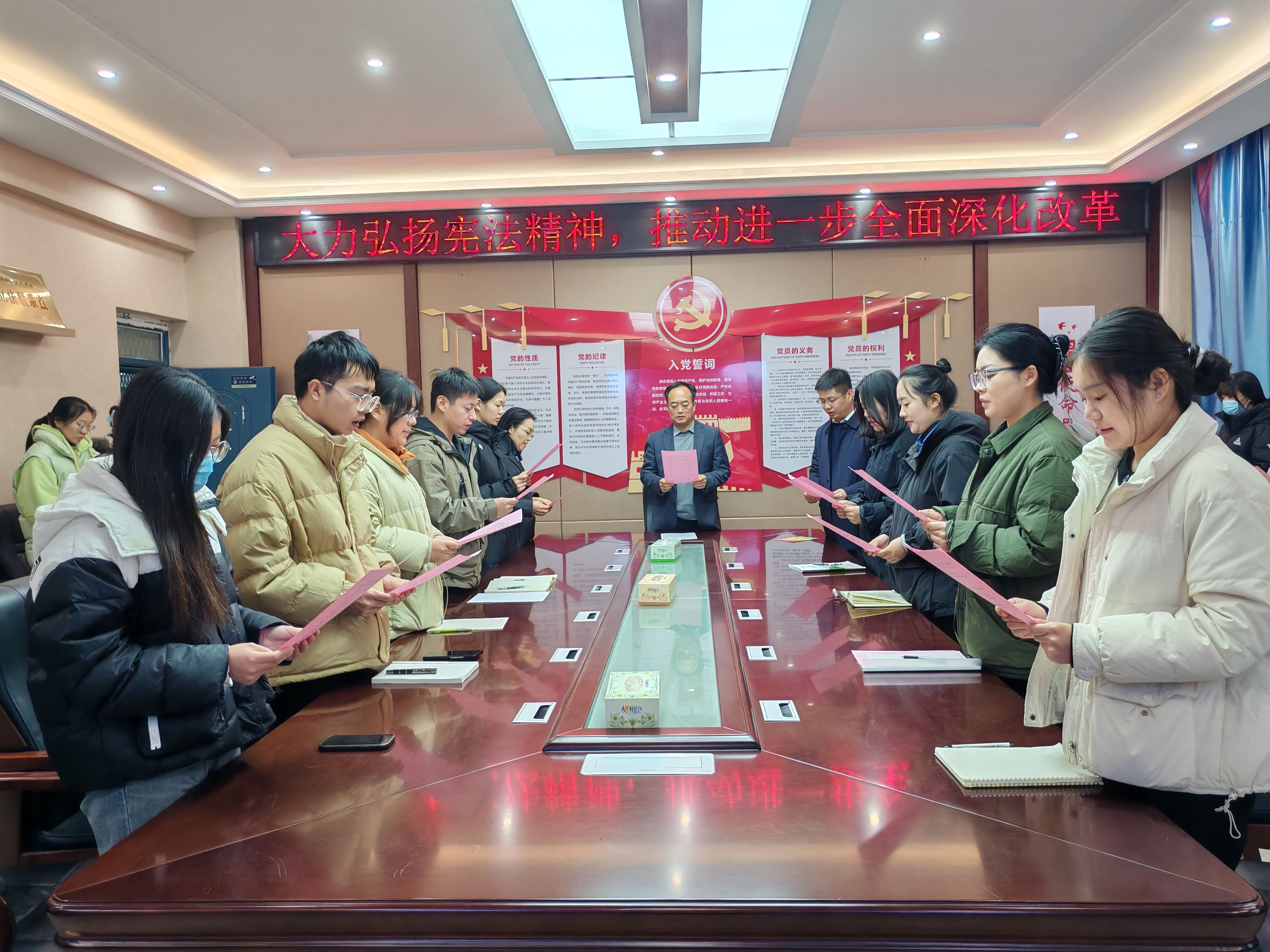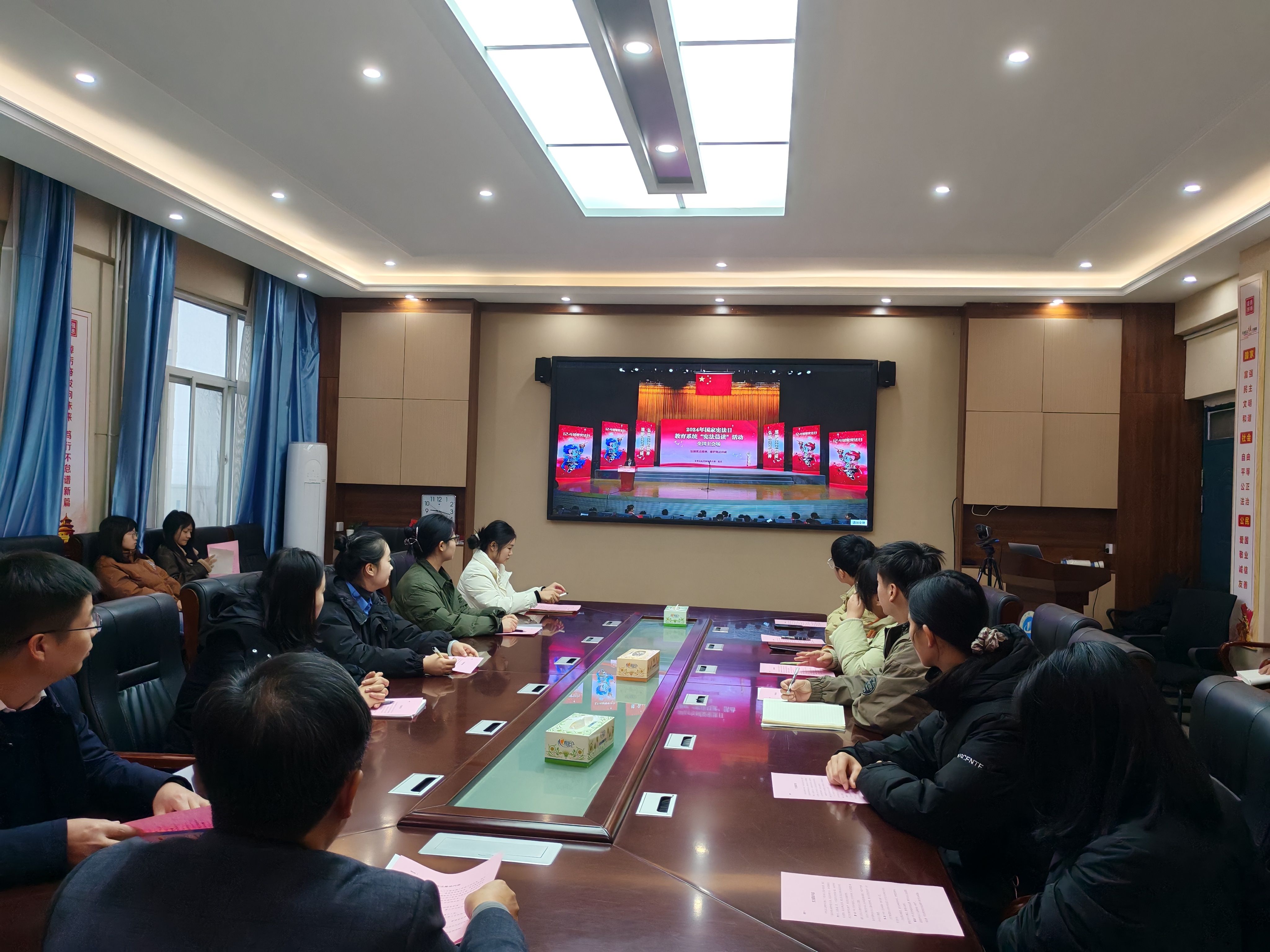 12月4日是我国第十一个国家宪法日。为进一步推进宪法法治教育,上午9点,yl6809永利官网集团在院会议室通过观看现场直播的方式同步参与北京主会场举行的“宪法晨读”活动。校纪委书记、监察专员张高峰、院党委书记苗道华、副院长马东丽及30余名师生参加。