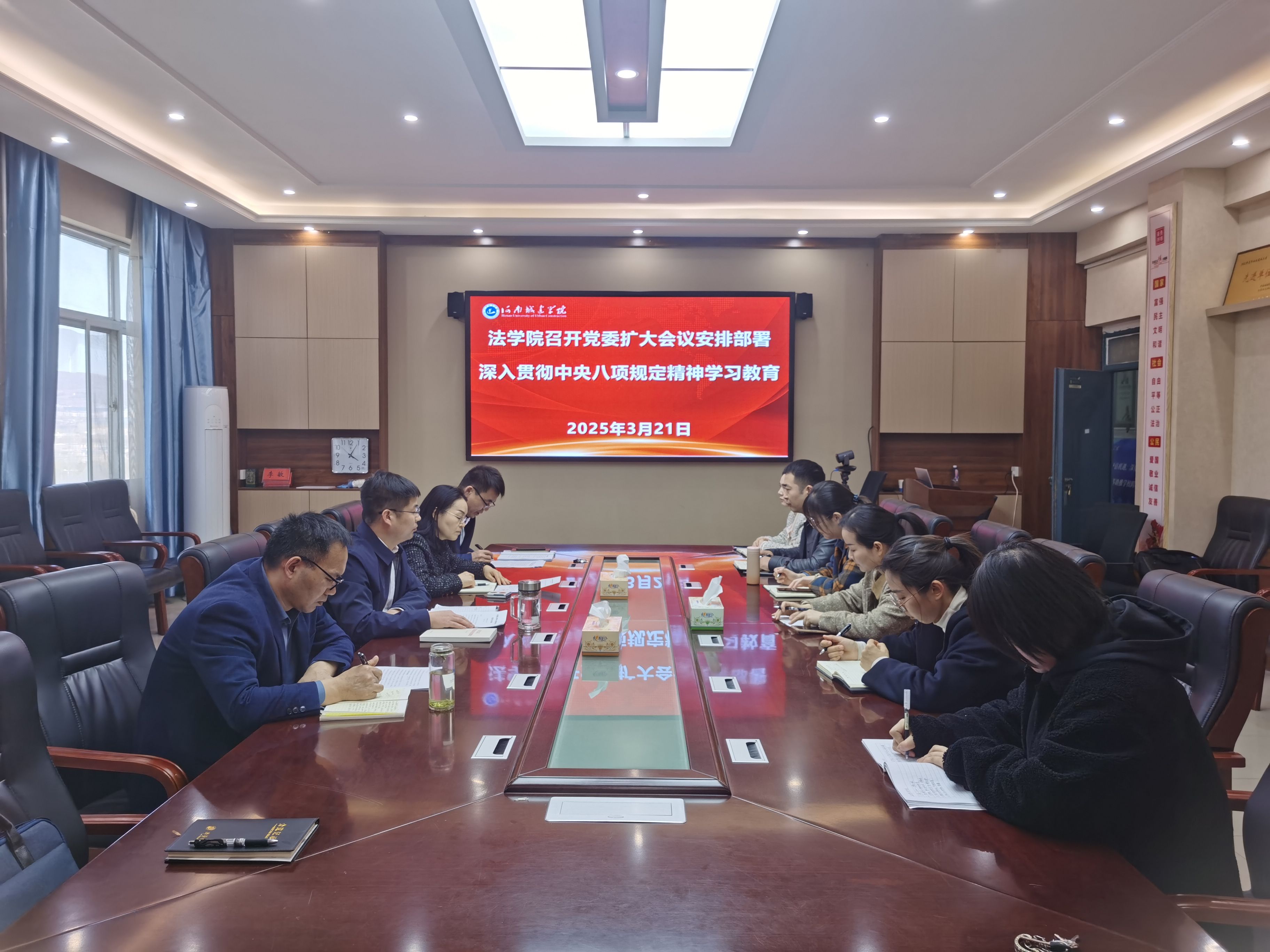 3 月 21 日下午,yl6809永利官网集团在422会议室召开党委扩大会议安排部署深入贯彻中央八项规定精神学习教育。会议由院党委书记苗道华主持,学院科级以上人员及各党支部书记参加会议。