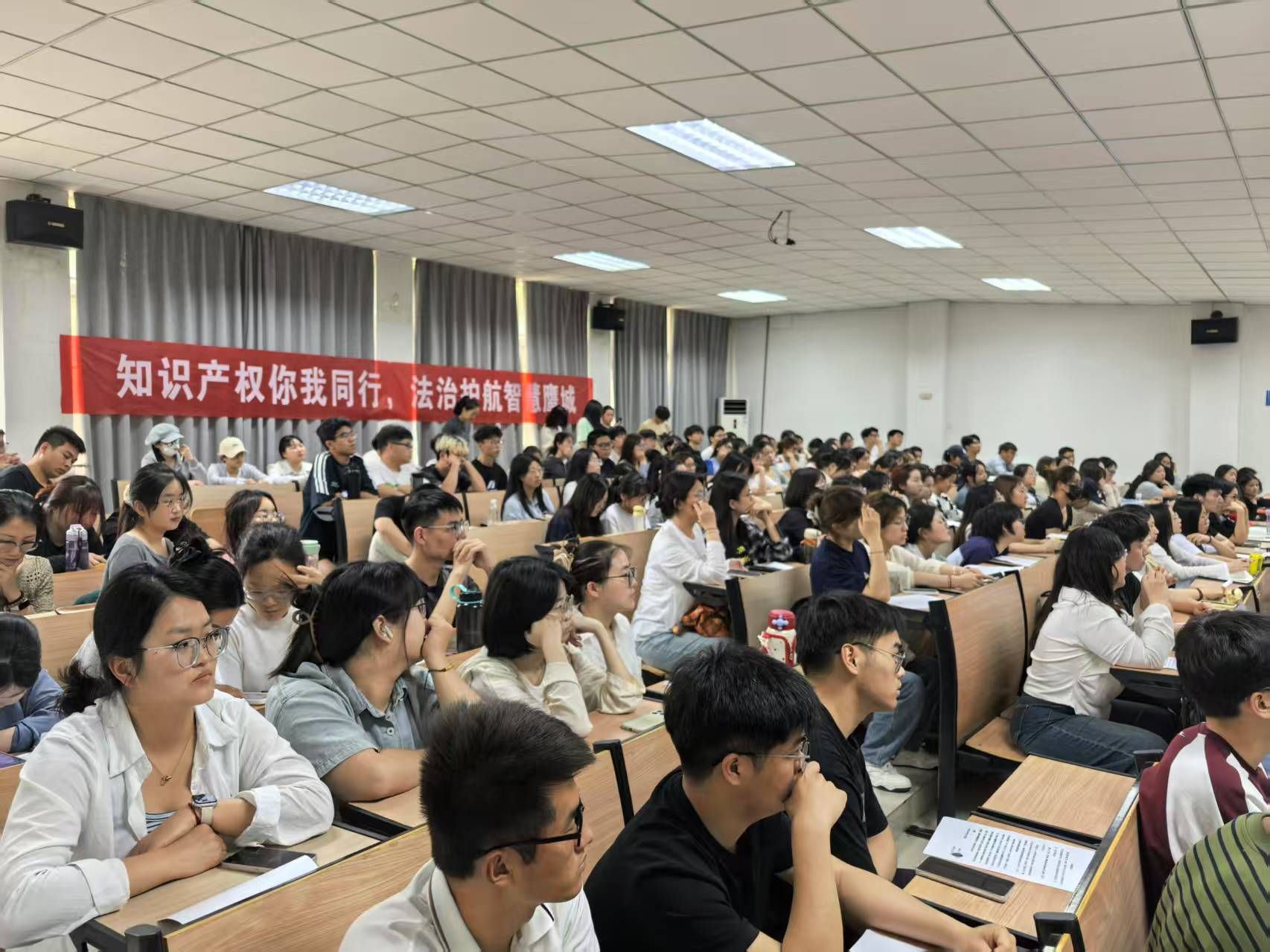 庭审结束后,法官依据案件审理的具体细节,开设专题普法课堂,系统阐释了外观设计专利侵权案件的裁判思路,深入解读专利侵权判定标准、证据规则等法律关键要点,着重强调知识产权保护对激发创新活力的重要意义。在互动环节,学生们从理论与实务两个维度积极提问,涉及“外观设计相似性认定”“侵权责任划分”等专业问题。法官结合丰富的典型案例与深厚的审判经验,以通俗易懂的语言剖析法律条文背后的逻辑原理,现场研讨氛围热烈,有效加深了学生们对法律实务操作的理解与认知。