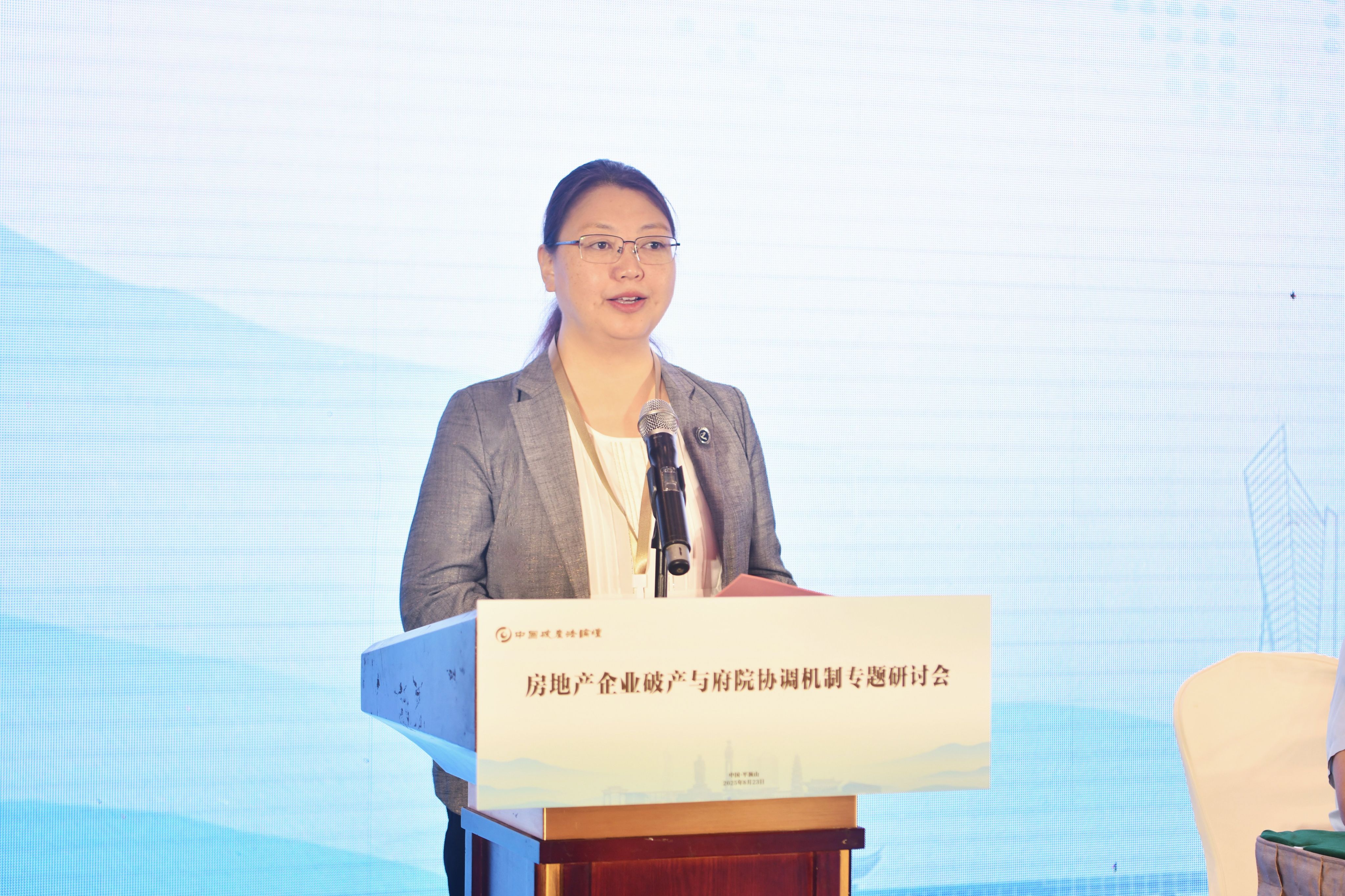 开幕式上,校长陈桂香代表学校对专题研讨会的召开表示热烈祝贺,向与会嘉宾介绍了学校发展历程与办学特色,并强调,作为应用型本科高校,学校始终以服务国家战略和地方法治建设为己任。她指出学校法学学科建设坚持与实务研究深度融合,积极参与地方法治建设,在破产法理论研究、人才培养以及服务地方法治建设中取得一定成果。她期待本次研讨会为破解房企破产难题贡献智慧,对推动房地产企业破产法治的完善和府院协调机制的优化产生积极影响,并预祝研讨会取得圆满成功。