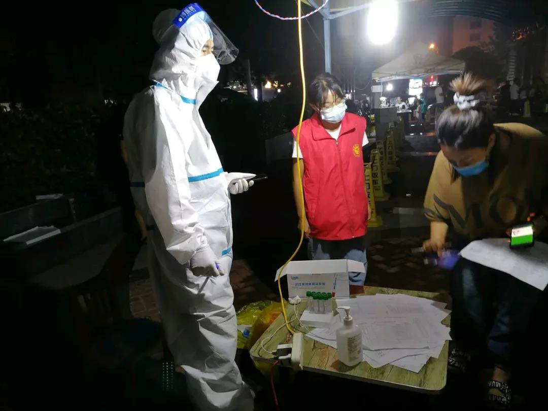 “紧急需要志愿者协助核酸检测工作,当我看到群里发布这条信息的时候,我毫不犹豫地报上了名,并第一时间投入到工作中去。”随后,李志瑶同学被分配到协助医护人员纷发采样管,并维护其秩序。在遇到不会使用智能机的老人时,她更是耐心地一遍遍讲解其流程,为医护人员减轻一些负担。夜幕慢慢降临,但是核酸检测工作却未停止其脚步,该同学在熟悉工作流程后,效率也慢慢地提高。李志瑶同学说:“最令我印象深刻的是,医护人员脱下防护服后,每个人脸上的汗水都往下滴,脸上的口罩印更是明显可见,并且他们没吃晚饭,连续工作了6个多小时,但每个人都毫无怨言,他们兢兢业业、不怕牺牲的精神让我敬佩不已。”青年有担当,国家有力量,抗“疫”路上,我先行,用青春力量唱响“抗疫”之歌。
