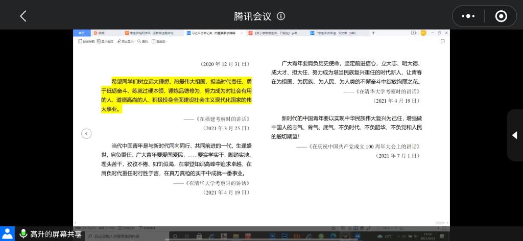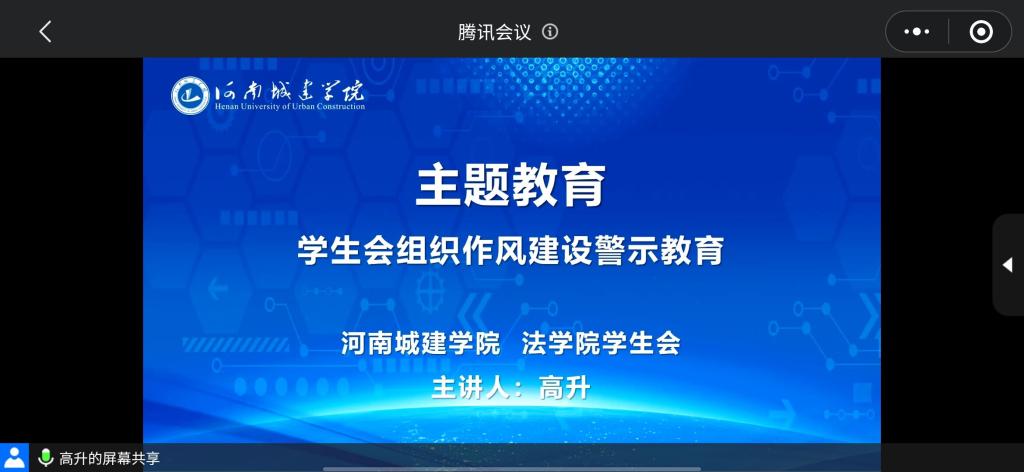 为深入学习习近平总书记关于学生成长的重要要求,引导学生会工作人员胸怀崇高理想,共同营造一个充满朝气,活力四射的组织。yl6809永利官网集团于2021年9月24日召开学生会组织作风建设警示教育线上主题会议,学生会全体成员参加会议。会议由yl6809永利官网集团高升老师主持。