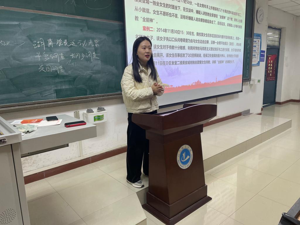 为贯彻落实习近平总书记讲话内容,引导广大青年团员学习马克思主义宗教观,树立正确的宗教信仰,11月22日晚上,我院在文管校区1号教学楼428教室,开展“马克思主义宗教观”团课培训,学院全体入团积极分子参加此次活动,本次活动由辅导员高升老师主持宣讲。