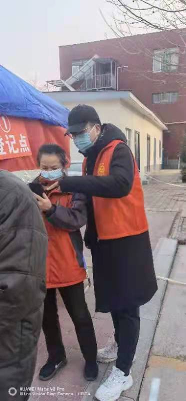 在社区基层党组织的统一领导下,王镇旗同学到社区疫情一线封控区和核酸检测执勤点进行抗疫志愿服务。他的主要工作是对进出车辆进行登记、督促进出的行人戴好口罩、普及防疫知识。当遇到使用电子设备有困难的老人时,他也会耐心细致地一步步帮助他们操作。他说:“在这次活动中,我体会到了志愿精神,看到了自己的价值,更懂得了青年人的使命和担当。我很荣幸成为这样一名志愿者,贡献着自己的一份绵薄之力。每个个体的力量或许微小,但我相信合力抗疫,疫情的阴霾终将散去,人们的生活终将恢复到平静与温馨!”