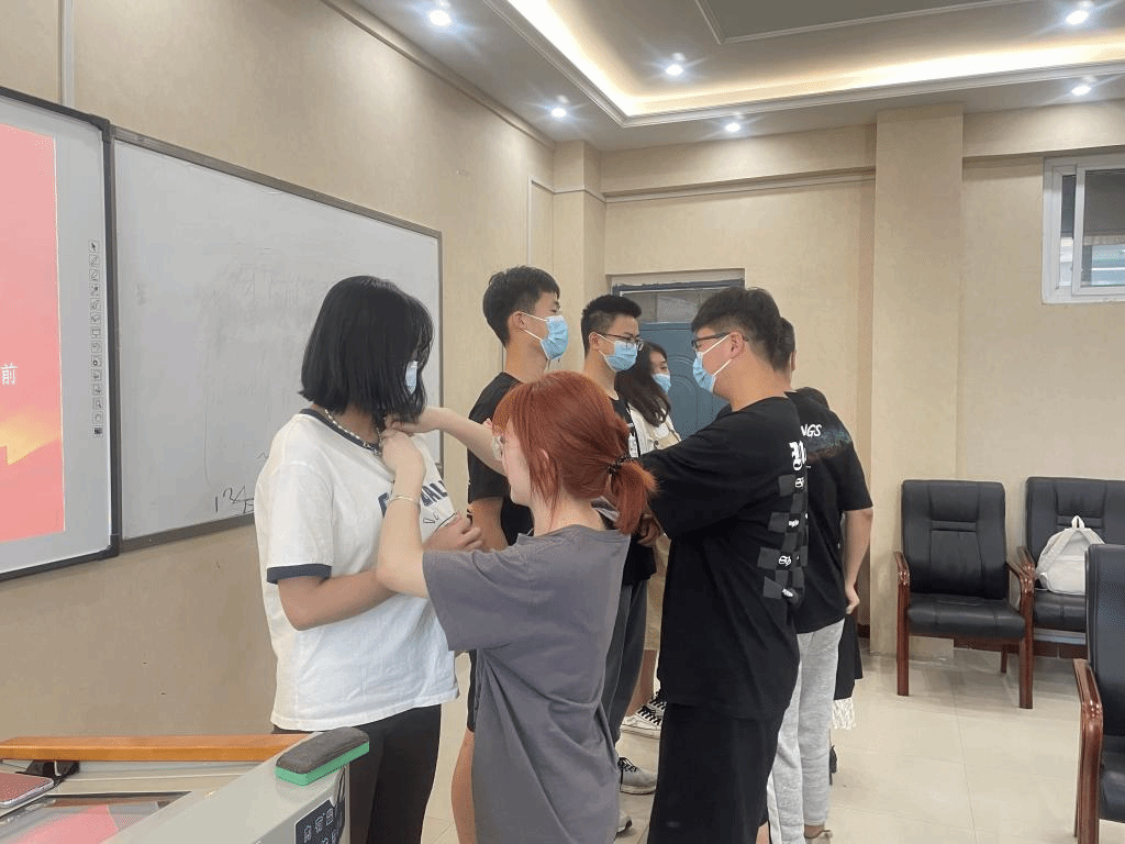 活动现场,来自全院5个团支部的15名新团员和5名老团员代表共同参加。入团宣誓仪式在庄严的奏唱国歌中拉开帷幕。会议伊始,由高升老师宣布新团员名字,并同老团员代表一起为新团员们佩戴团徽。在领誓人的带领下,全体人员面朝神圣的团旗庄重宣誓。熟悉又庄严的誓词提醒着每位团员:铭记团员使命,发挥模范作用。