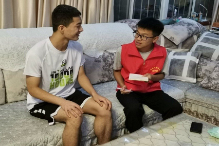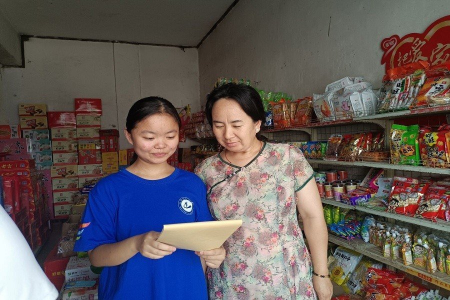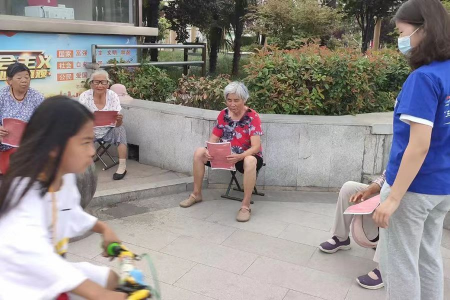 图为实践团成员向社区居民了解其对三孩政策的相关看法