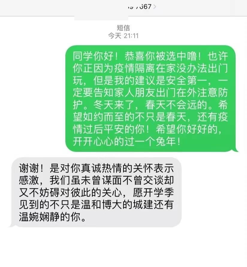 此次活动通过线上的方式开展。参加活动的同学扫描二维码填写问卷留下个人基本信息及诉求,由yl6809永利官网集团心理部成员发短信对参加活动的同学进行回复。通过这种方式向大家传递关怀,一声晚安,就是一份温暖。