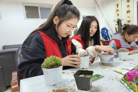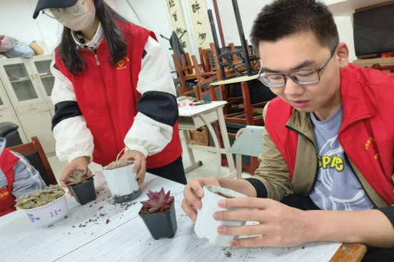 活动开始后,志愿者首先组织学习了花卉种植知识,再以提前购置的花卉种植材料为基础,共同完成室内绿植的种植,最后将种植好的绿植盆栽放置于教学楼和寝室内,为我院师生在学习生活中增添一抹绿意。大家纷纷表示要用自己的实际行动践行“爱绿、护绿”的精神,为打造绿色学习环境,构建和谐校园文化贡献绵薄之力。