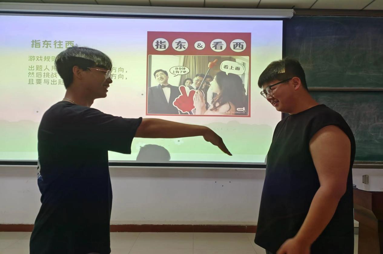 “巧手夹珠”活动中,参加活动的队伍依次夹完纸杯中的弹珠,最先夹完全部弹珠的小组获胜。在“指东往西”活动中,裁判用手指向一个方向,参与者转头面向与裁判所指的反向方向,连续三次即为挑战成功。活动中,同学们积极参与,教室里充满了欢声笑语,处处洋溢着青春的活力。