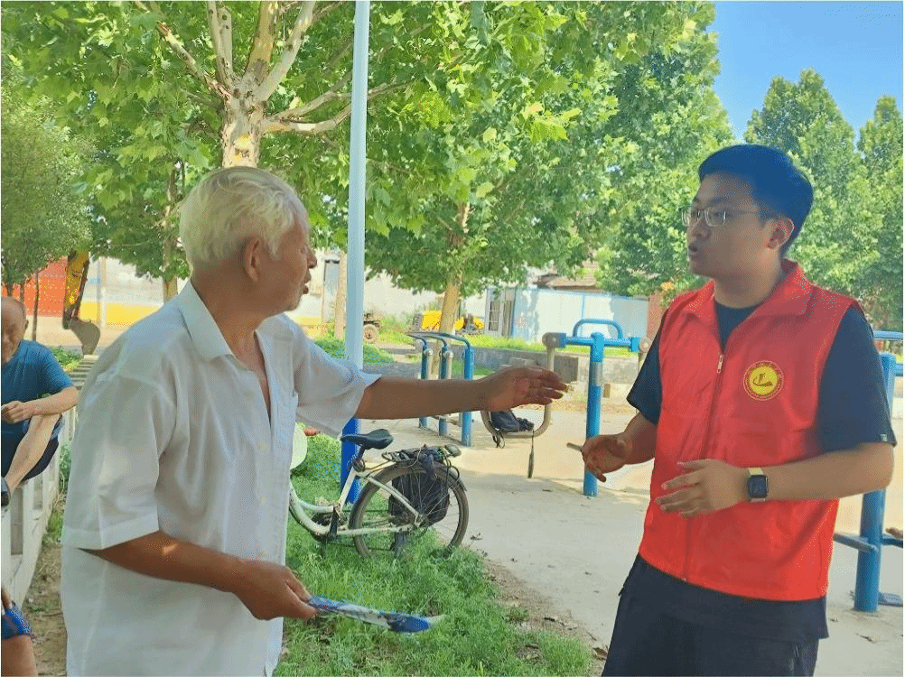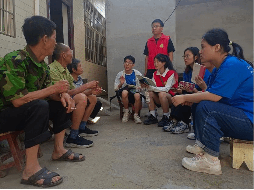 团队成员顶着酷暑,奔走于乡村的大街小巷,触摸年代的历史脉络,瞻仰农耕文化的魅力。团队成员们积极发挥学科优势,结合所学专业知识,分别采用随机抽样和目的性抽样的方式,走访了数百余位村民,通过深入访谈了解他们对自身所在村庄及周围村庄发展的感受以及对村干部推进新时代文明实践中心工作的意见看法。实践团队更是挽袖子下田,亲身感受当地居民的劳作方式,晾晒着的农作物、插在田里的遮阳伞、浸满汗水的衣物,使队员体会到村民艰辛与伟大。