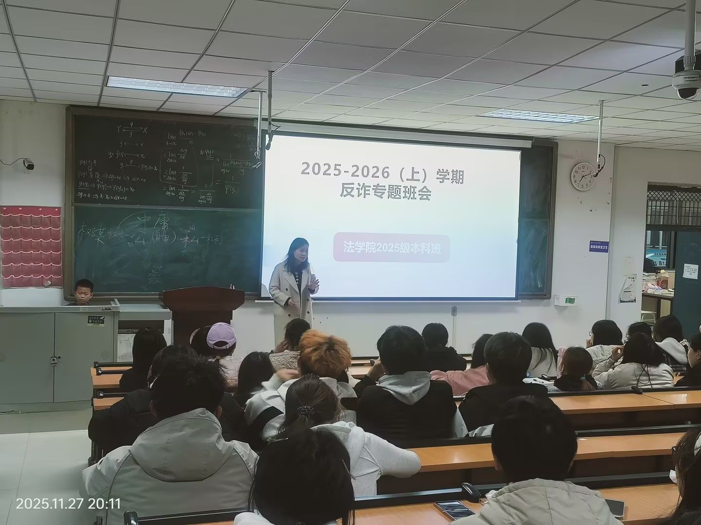 此次反诈班会立足法学专业特色、紧贴校园实际,既以法律视角拆解骗局、明晰维权路径,又强化学生“识骗、防骗、拒骗”能力与法治素养。