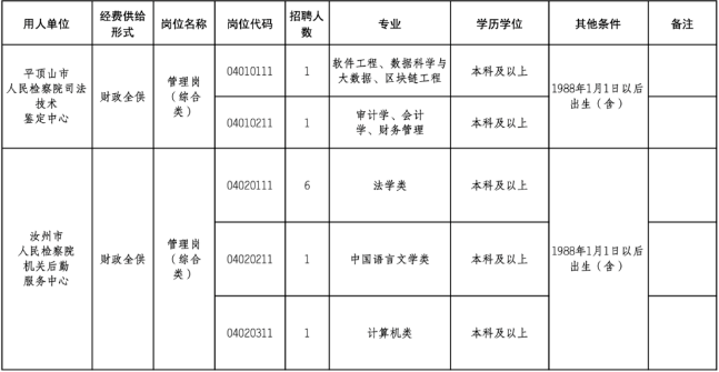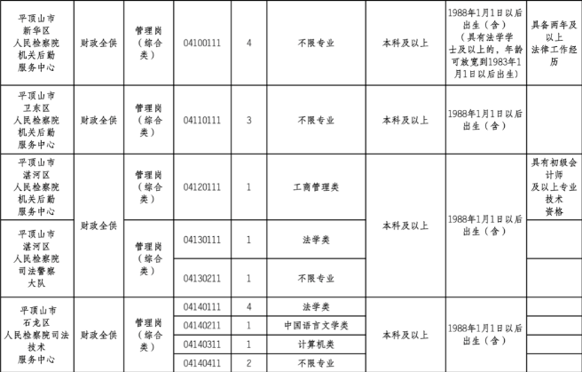 平顶山市检察机关所属14个事业单位共招聘工作人员45名,具体招聘岗位及相关要求条件(详见附件)。