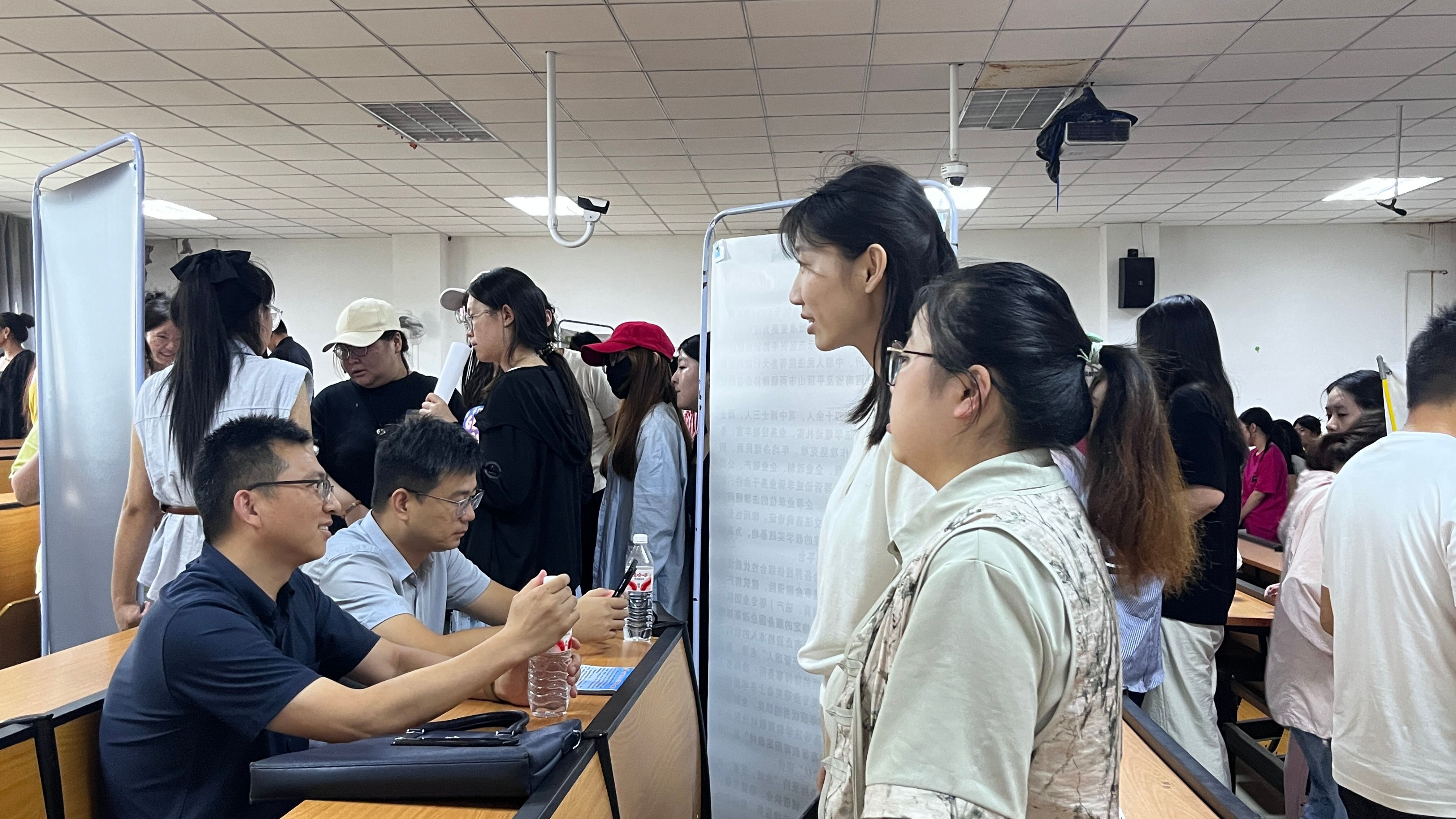 招聘会现场氛围火热而有序,同学们手持精心制作的简历,积极与招聘人员沟通,围绕岗位要求、职业发展、薪资待遇等深入咨询。各单位招聘负责人耐心答疑,详细介绍业务范畴、团队文化与人才培养模式,众多学生当场投递简历,表达强烈求职意愿。